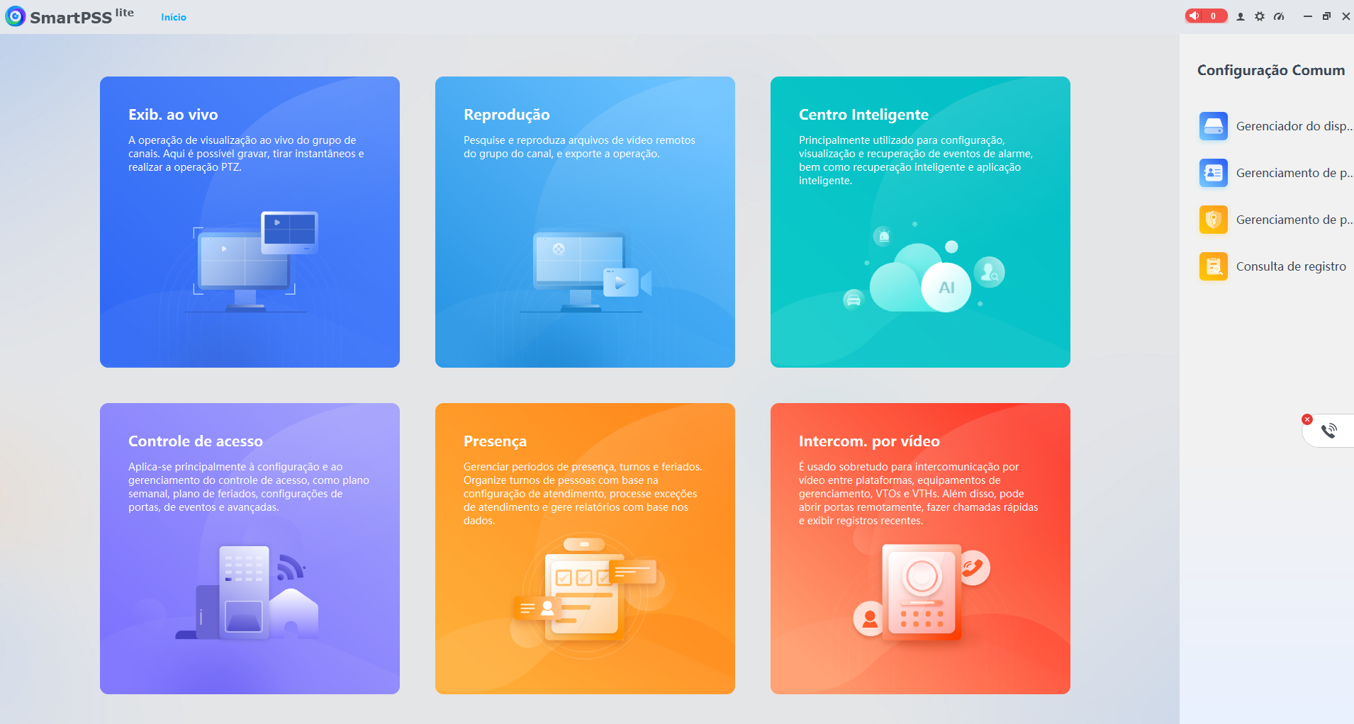 O software cliente SmartPSS Lite foi projetado para configurar e gerenciar até 64 dispositivos Dahua, e Intelbras,como câmeras IP, gravadores (NVRs, XVRs), dispositivos de controle. Versão:V1.3.6
